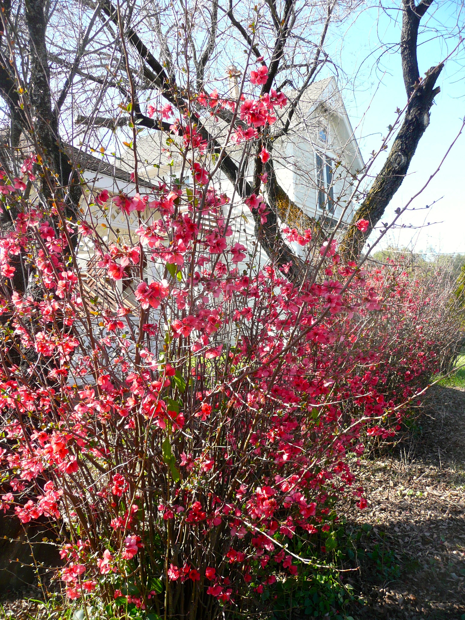 After last week’s rain and some nice warm weather (67 F at 3 pm), our trees and flowers are really starting to bloom.  This is one of the prettiest times to visit the Sierra foothills.  Nancy and I are spending more time in the farm and less time in the house, getting the irrigation system on-line and planting veggies and harvesting broccoli. Stop by and say hello if you are driving or cycling Highway 49.
