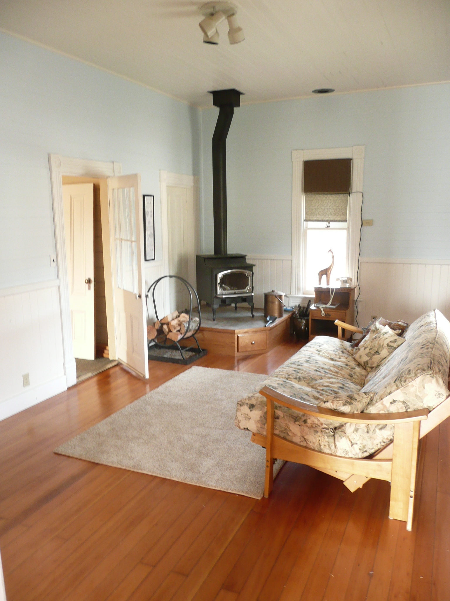 The Space – In 2013, the B&B was completely refinished. Our goal was to preserve the antique beauty of our Victorian house while providing modern comforts as well. Downstairs we restored the original wood floors and installed a wood stove in the living room. Upstairs we installed new soft carpets and chandlers. We also installed a quiet state-of-the-art heat pump system in all the guest rooms. This system provides heat in the winter and cooling in summer. Each of the three sleeping areas have independent climate control. In the colder months we also use the wood-burning stove for additional heat.